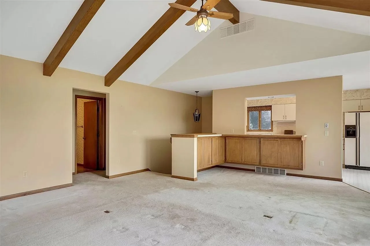 The original kitchen was a traditional galley with a small pass-through window. We love a good galley, but this one had issues. The wall dividing the kitchen from the living room created a cramped dining area on one side, and an awkward, unusable space on the other.